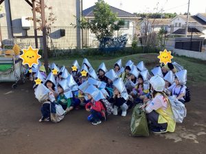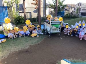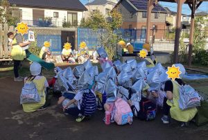 揺れもおさまり、防災頭巾を被り園庭へ素早く避難することができました。