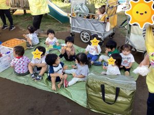 午睡明け、大きな警告音が鳴り響き、避難訓練がスタートしました。