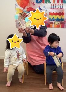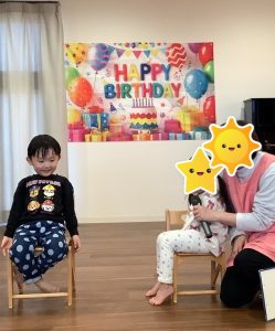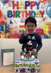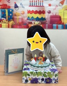 まずは、のぞみ組さんのお部屋で2歳と3歳になった3人のおともだちのお祝いしました🎂
