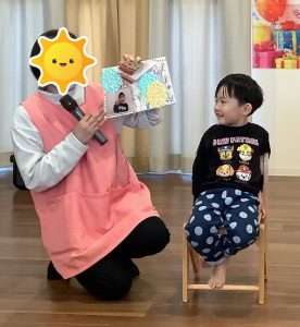 恒例のお誕生児インタビューは、お名前・何歳になったか・好きな食べ物を聞きました。